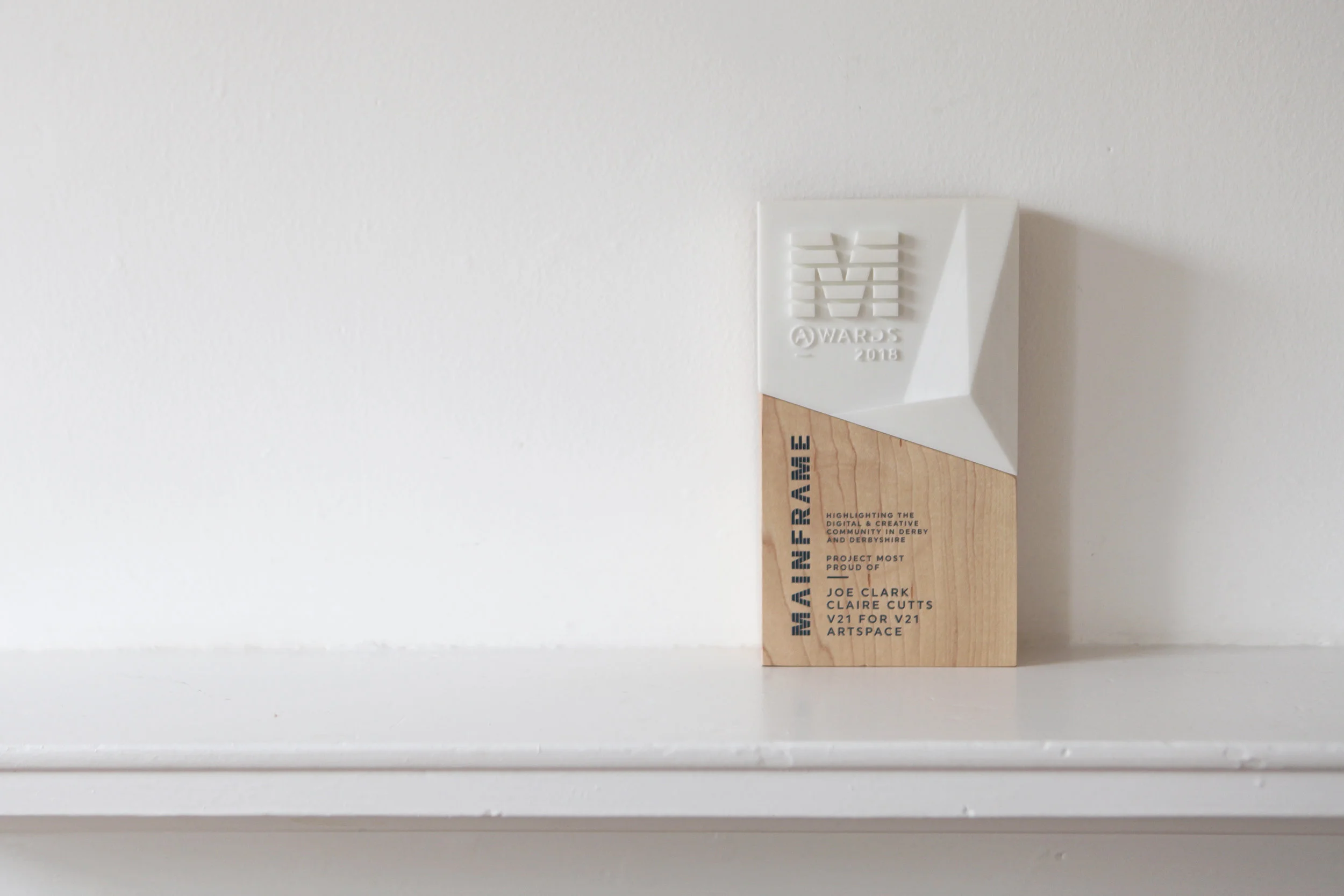 On Tuesday 24th April 2018 V21's Claire Cutts & Joe Clark won a Mainframe Award for 'Project Most Proud Of' for V21 Artspace (creating virtual versions of exhibitions).