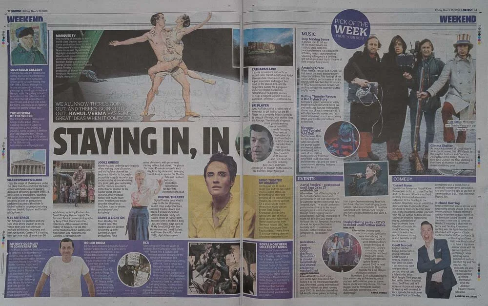 Metro suggests great ideas for staying at home, including Marquee TV, Shakespeare’s Globe, and V21 Artspace. V21 ARTSPACE capture realtime arts & culture exhibitions, galleries, spaces, & objects to produce and present interactive 3D virtual tours and immersive VR experiences. With more than 80 to choose from, you can explore for free at www.v21artspace.com including Newstead Abbey: Kindness by David Shrigley, New Art Exchange: Hassan Hajjaj’s The Path, Criminal Ornamentation: Yinka Shonibare MBE curates the Arts Council Collection, Iconic Images: Rare & Unseen photographs by Terry O’Neill, Nottingham Contemporary: The House of Fame: Convened by Linder and the collections of spaces such as the History of Science Museum, Derby Museum and Art Gallery and Nottingham City Museums and Galleries.